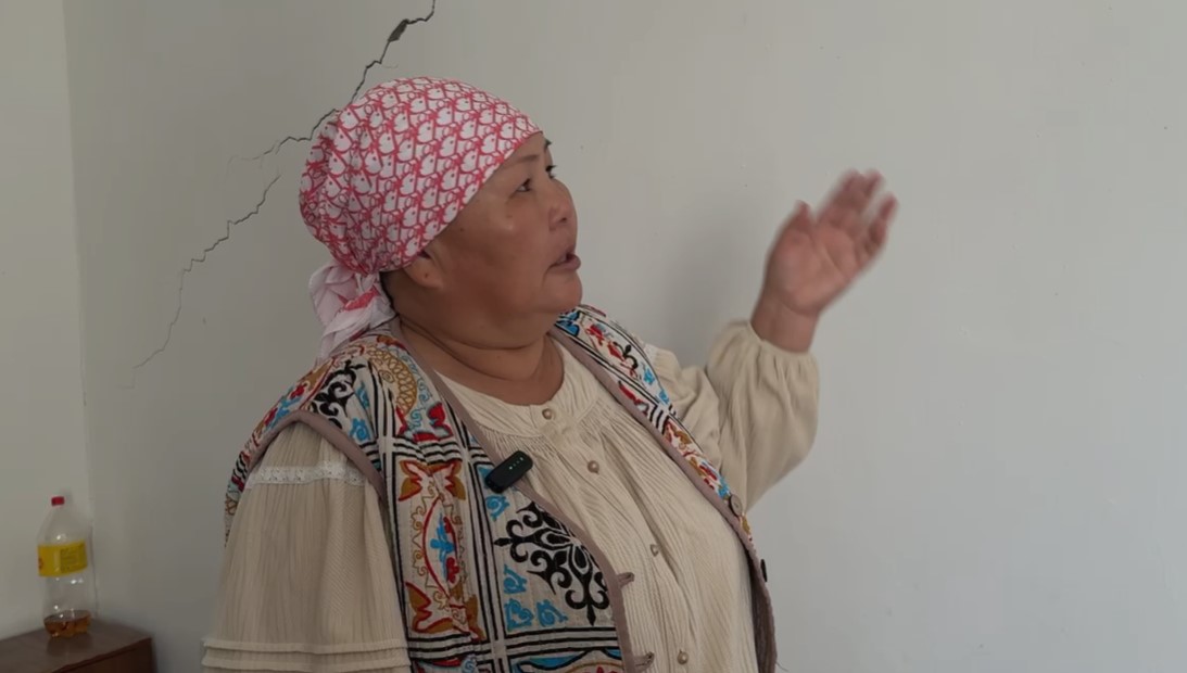 Ол үш жыл бұрын мемлекеттік бағдарлама бойынша баспана алған. Бірақ үй бір жыл өтпей жатып қирай бастағандықтан, түнде отбасымен қашып шығуға мәжбүр болған. Әкімдік оған көршілес үйден жаңа пәтер берді, бірақ ол да одан жақсы болып шықпады. Қабырғалары қақырап, жарықтардың арасы үлкен болғаны соншалық көрші бөлмеден жарық көрінеді.