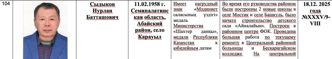 Араға бірнеше жыл салып, дәл осы адам, ресми сыбайлас жемқорлық үкімі бар тұлға депутаттардың шешімімен Абай облысының Құрметті азаматтары қатарына еніп отыр.