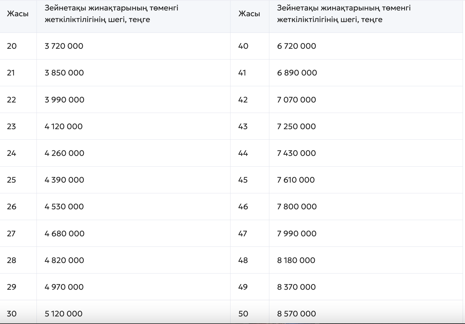 Зейнетақы жинақтарының 2026 жылға арналған ең төменгі жеткіліктілік шегі жарияланды, деп хабарлайды Ulysmedia.kz.