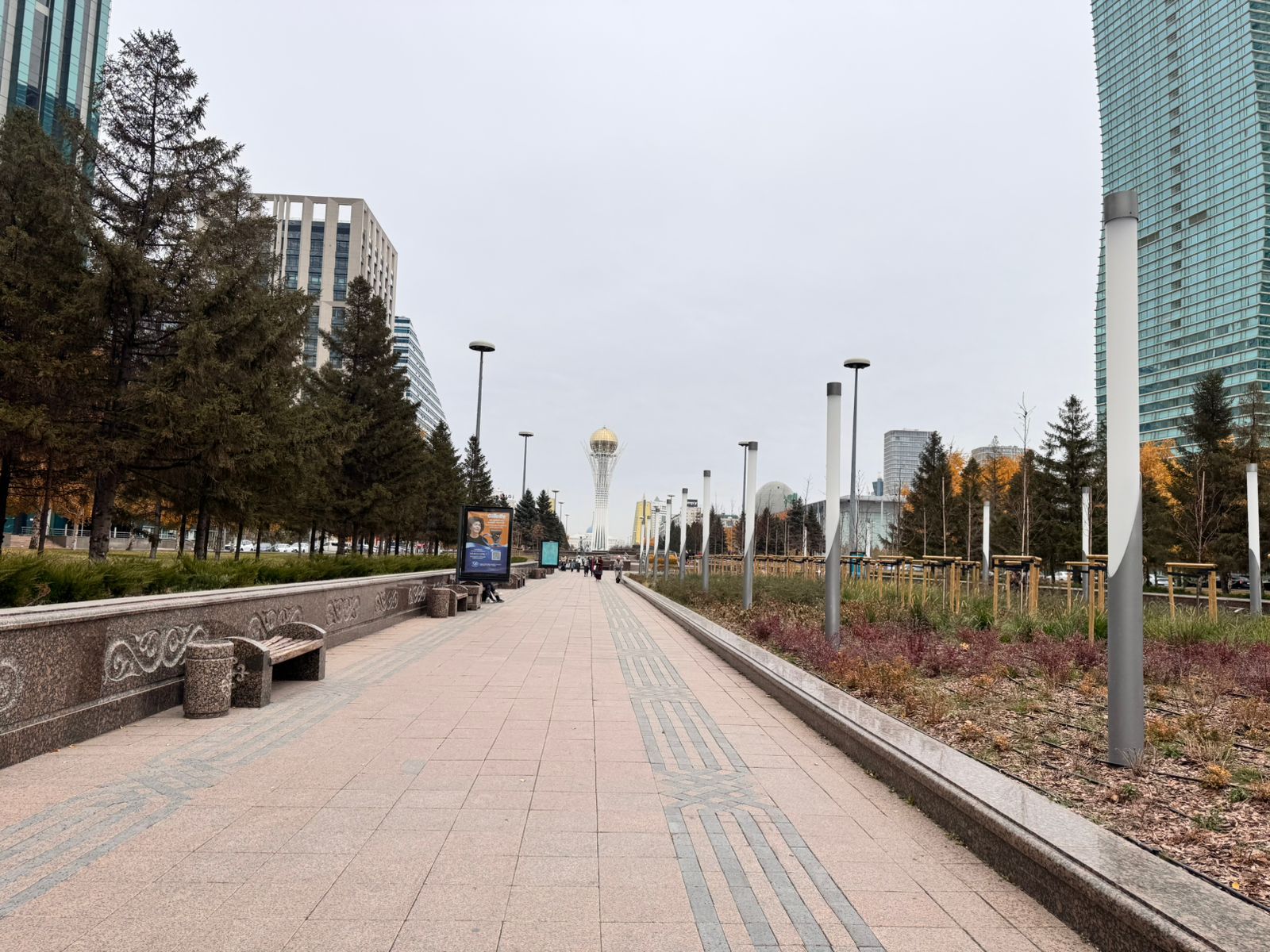 Орталық бульварлар мен саябақтарда халық сирек. Көк тулар ілінгенімен, сахна үні, концерт дауысы естілмейді. Кейбір тұрғындар отбасымен серуендеп жүр, бірақ жалпы көңіл күй тыныш, қалыпты.