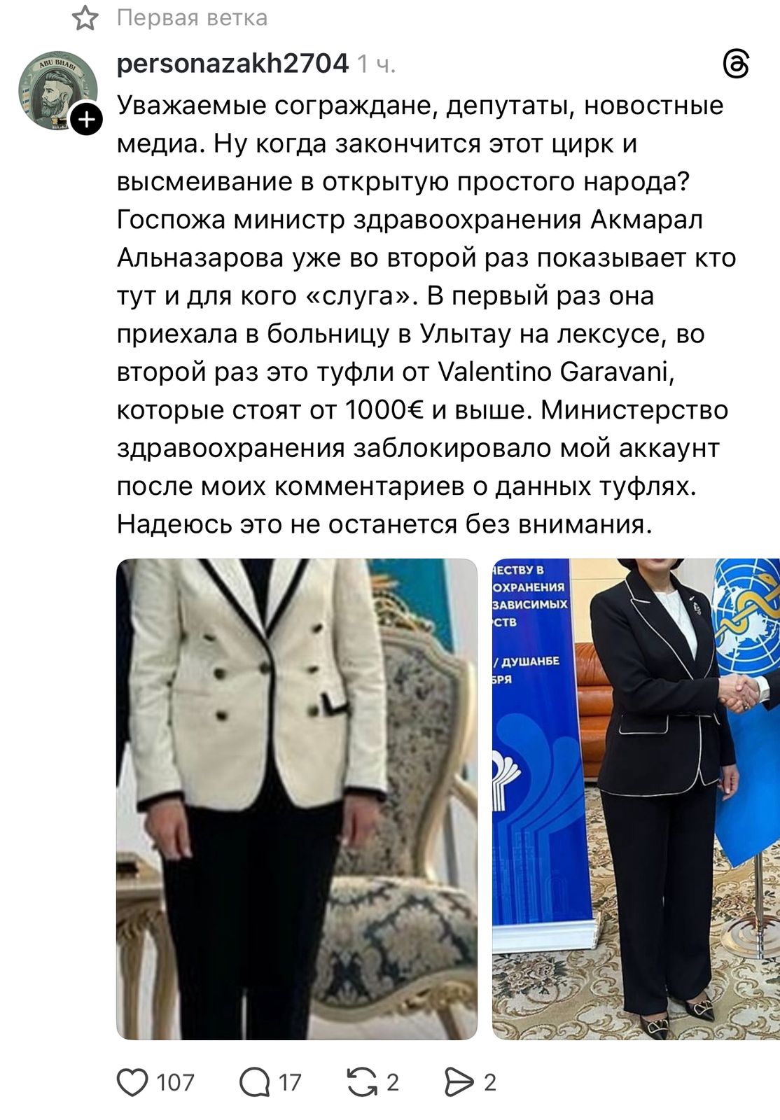 Бұған дейін әлеуметтік желі қолданушылары министрдің қымбат сән үлгілеріне сын айтып, дәрігерлер мен медицина қызметкерлері ескі форма киіп жүргенде, ведомство басшысының қымбат киім үлгілерін көрсетуі орынсыз екенін атап өткен еді.