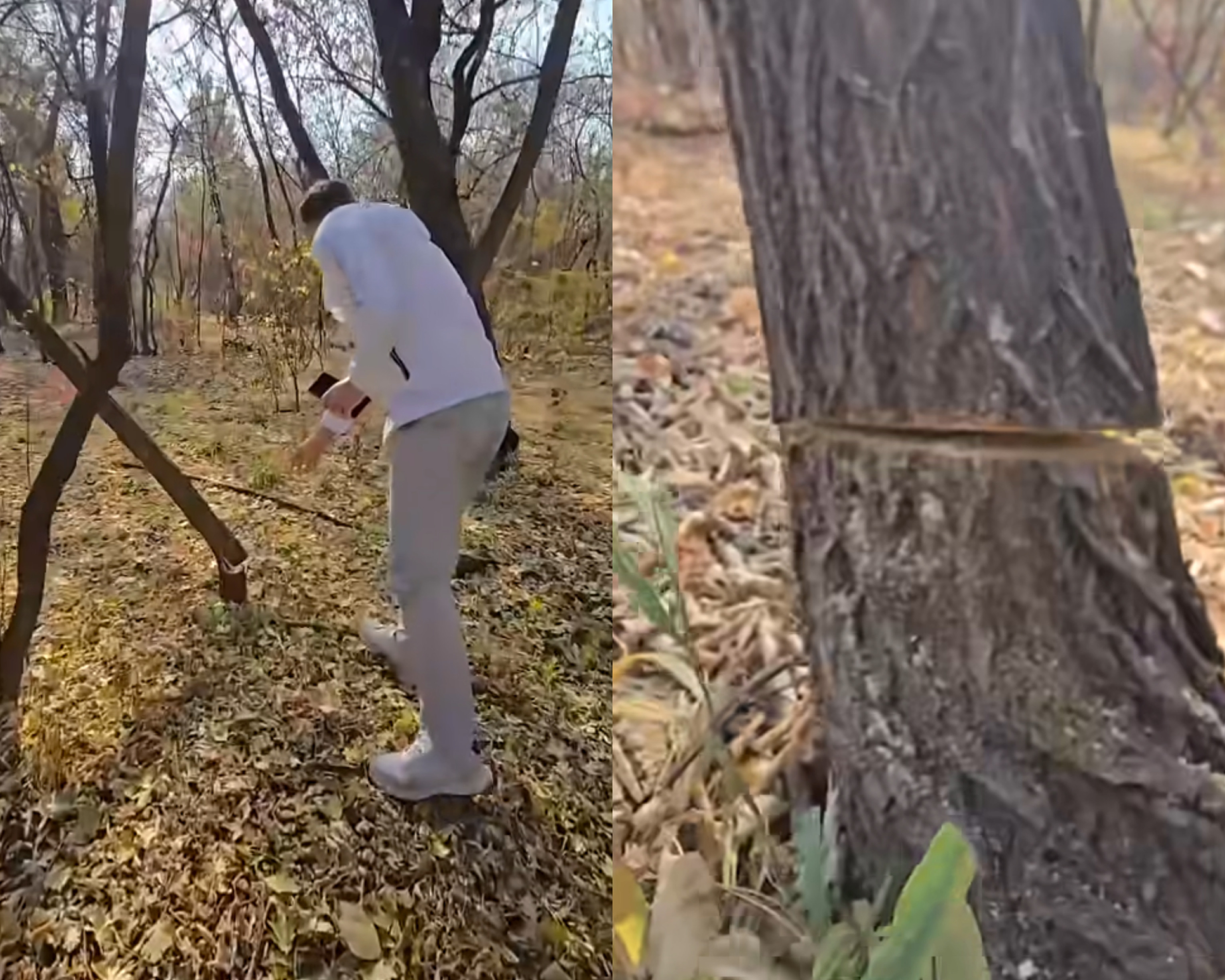 Бірнеше апта өткен соң экобелсенді Салтанат Ташимова да видео жариялап, онда ауыр техника ағаш қабығын бүлдіріп жатқанын көрсетті. Ол бұл әрекетті «қылмыс» деп атады.